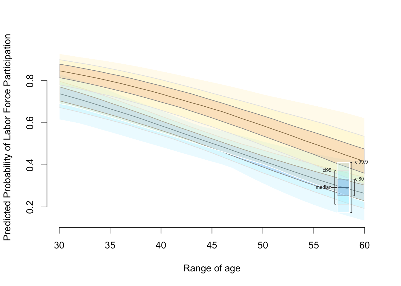 ci.plot(sim_logit_zelig, ylab = "Predicted Probability of Labor Force Participation")